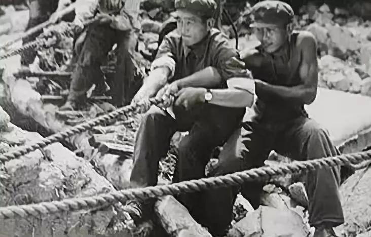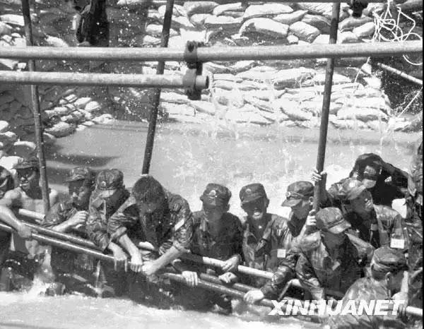 解放軍戰士用身體搭“人橋”