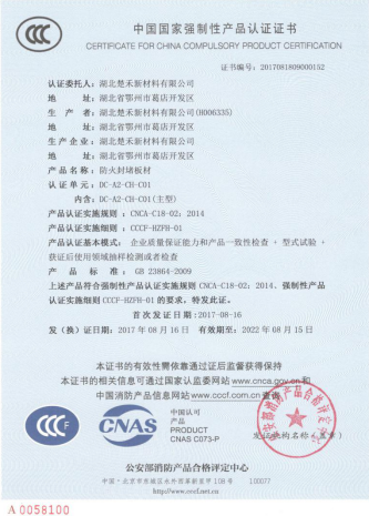 防火封堵板材 ( CH-C02 ) 3C認證證書