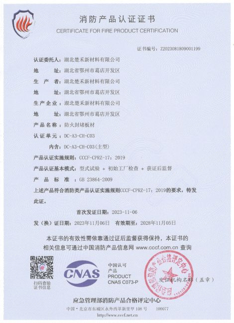 防火封堵板材(CH-C03)3C認證證書